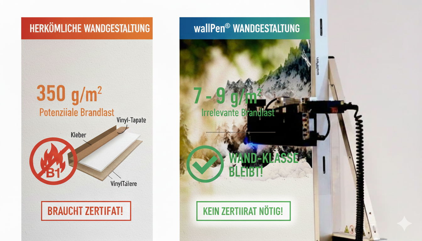 Gerade das Thema Brandschutz ist in öffentlichen Gebäuden, Schulen und Unternehmen allgegenwärtig. Herkömmliche Deko-Elemente wie Leinwände, Poster oder großflächige Klebefolien stellen oft eine zusätzliche „Brandlast“ dar. Sie bestehen aus brennbaren Materialien, die im Ernstfall Feuer nähren können.